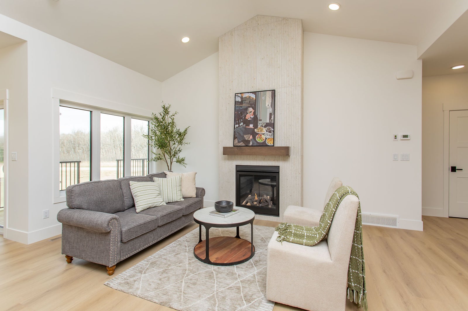 If you’ve been looking for acreage living without giving up convenience, this home in Poplar Pointe Estates is worth a closer look.Built by award-winning Beacon Homes, this brand-new 1,662 sq.ft. bungalow offers a layout that just makes sense. Everything you need is on the main floor—3 bedrooms, 2 bathrooms, and an open living space with vaulted ceilings and a gas fireplace that naturally becomes the heart of the home. The kitchen is well thought out with plenty of storage, a large walk-in pantry, and finishes that feel current without being over the top.The primary suite is set up for comfort, with a walk-through closet connecting directly to the laundry room and a well-designed ensuite featuring a standalone tub, tiled shower, and dual vanities. It’s one of those layouts that quietly makes everyday routines easier.Set on a large lot surrounded by mature trees, this property gives you the space and privacy people are looking for, while still being just minutes from Red Deer and Sylvan Lake. Add in the triple attached garage, energy-efficient construction, and room to grow in the basement, and you have a home that works now and well into the future.