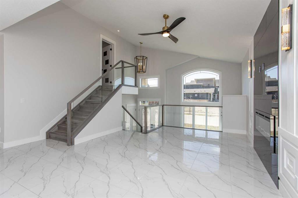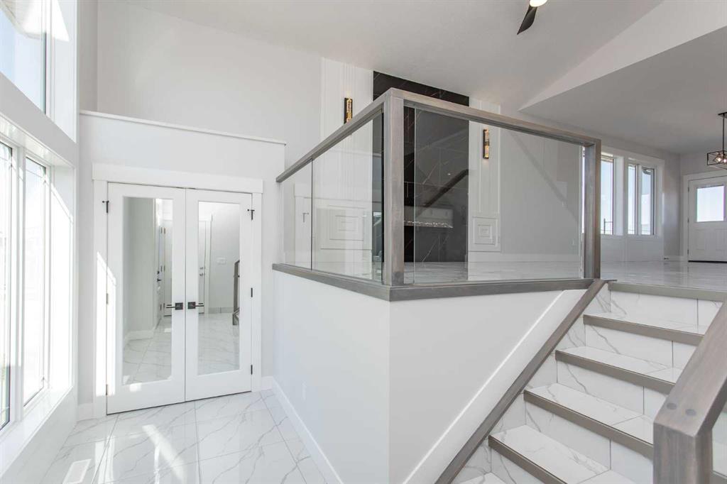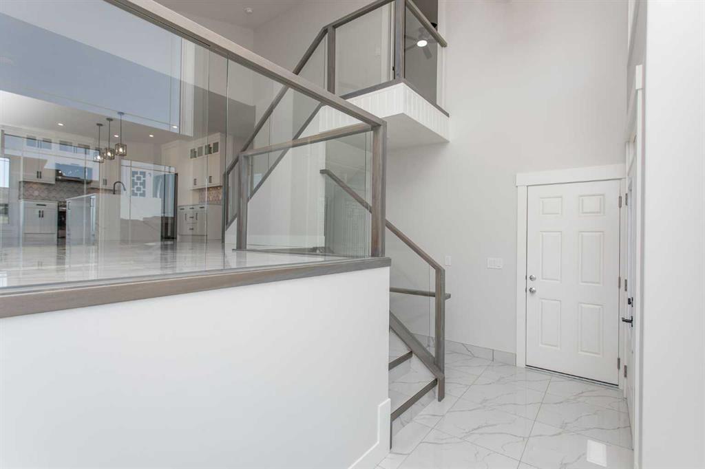 From the moment you walk through the oversized entryway, you know this isn’t a cookie-cutter build. The glass-panel staircase sets a modern tone, while soaring ceilings, custom millwork, and an abundance of natural light give the space a high-end yet welcoming feel.