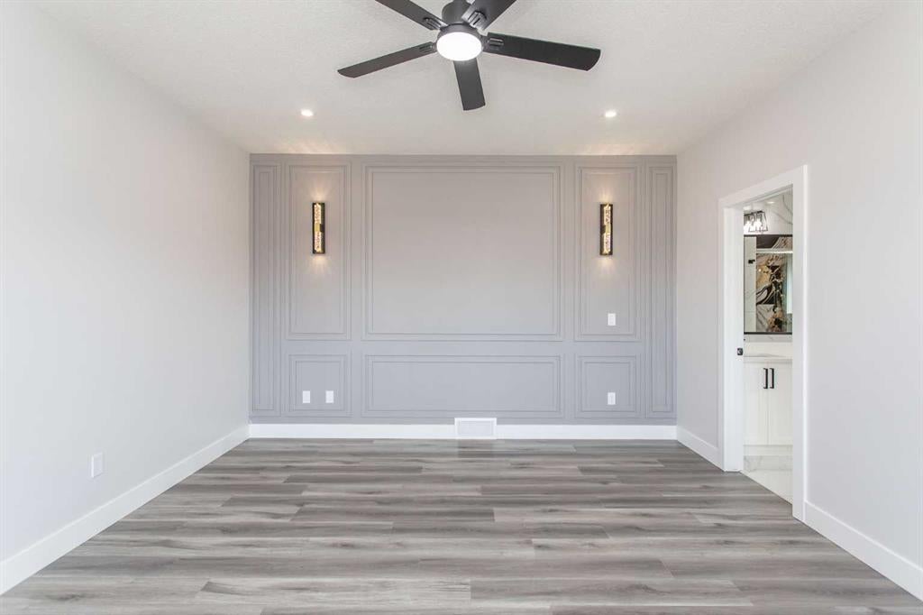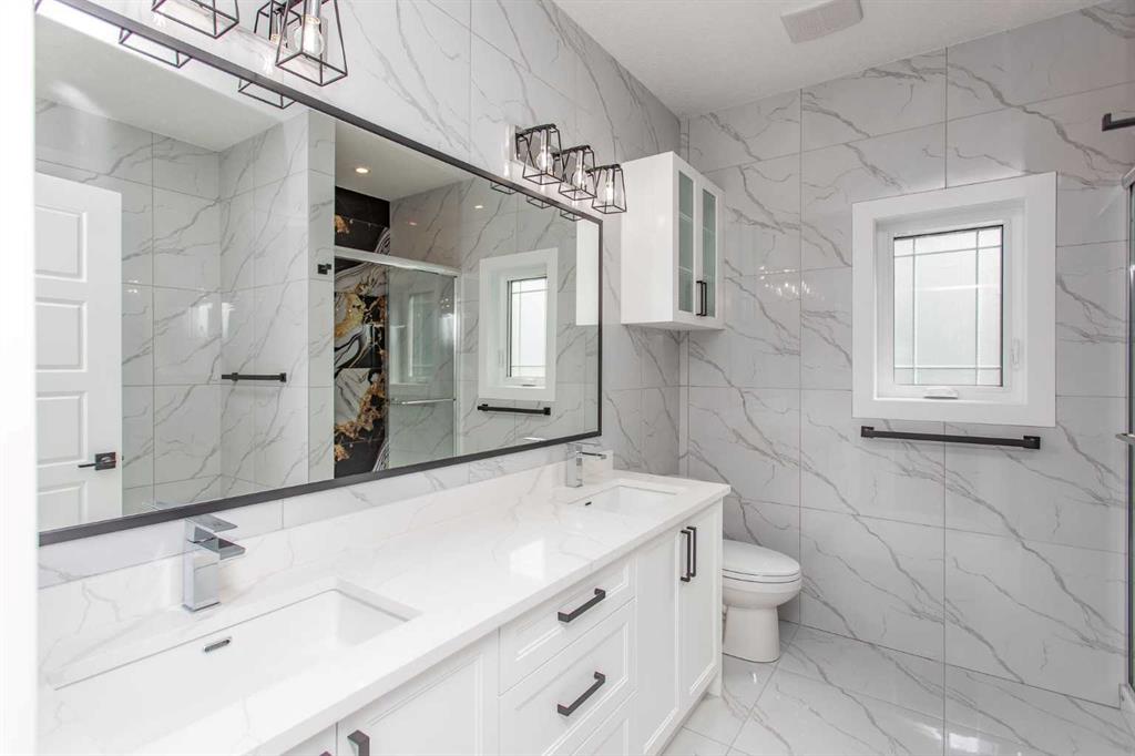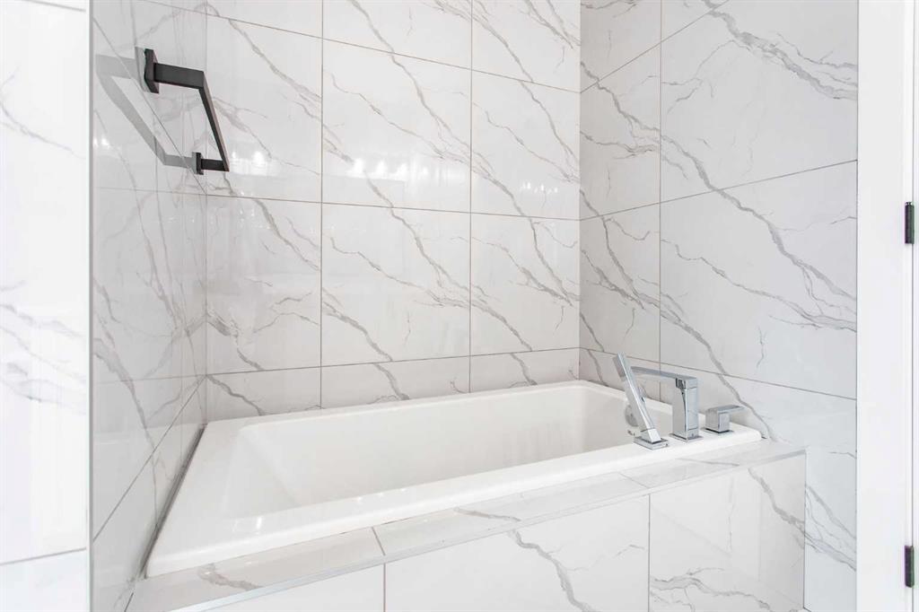 The Primary Bedroom sits on its own level, creating a true sense of retreat. Enjoy a large walk-in closet with built-in organizers, a spa-inspired 5 Piece Ensuite with a soaker tub and custom tile, and private access to a South-facing balcony—your own quiet escape above it all.