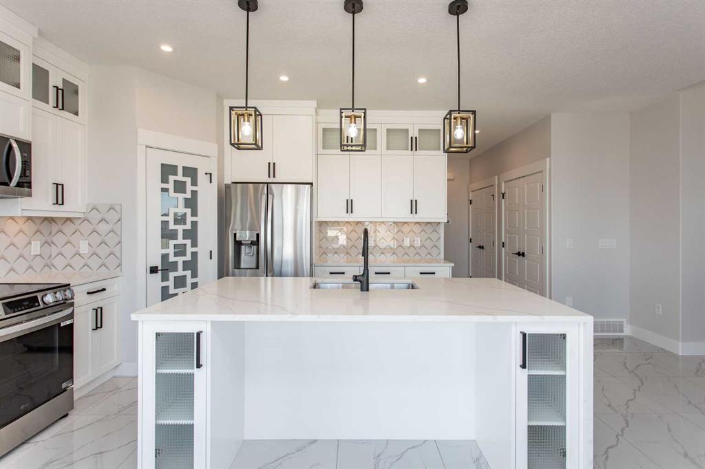 At the heart of the home is a Chef-inspired Kitchen with stainless steel appliances, floor-to-ceiling cabinetry, a walk-in pantry, and a quartz waterfall island that’s as functional as it is beautiful. Whether you're prepping dinner, hosting guests, or helping with homework, this Kitchen handles it all.